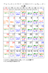 11月のカレンダーです。ご確認と手続きよろしくお願いいたします。